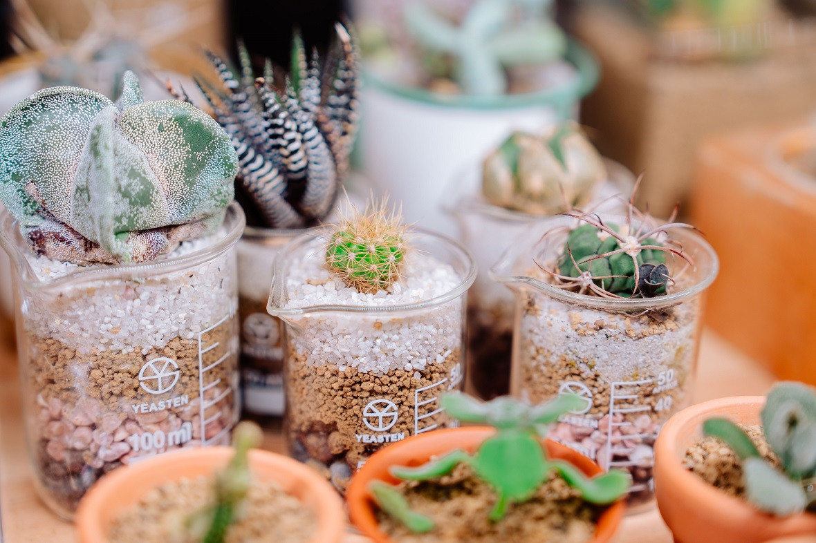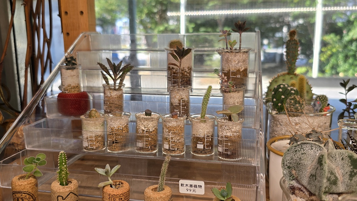 這裡除了人氣商品「燒杯植栽」、「扭蛋植栽」之外